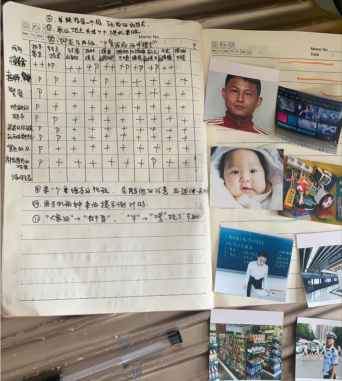 大米和小米执行督导也为孩子制定了细致且个性化的干预计划,比如,先根据琢琢喜欢的游戏和他建立起亲密关系,然后从“模仿”开始展开教学,教琢琢学习指物、提要求,学习说“要”和“好”……