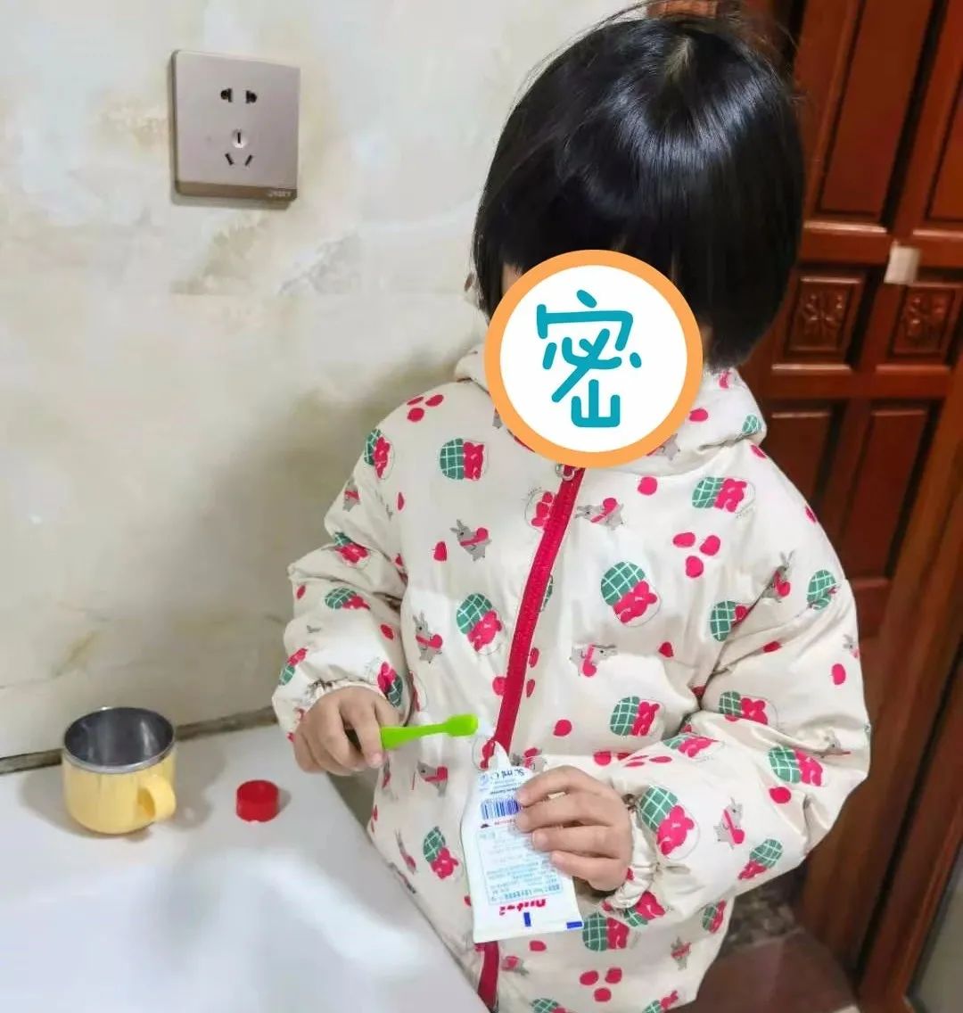 姑娘自己刷牙