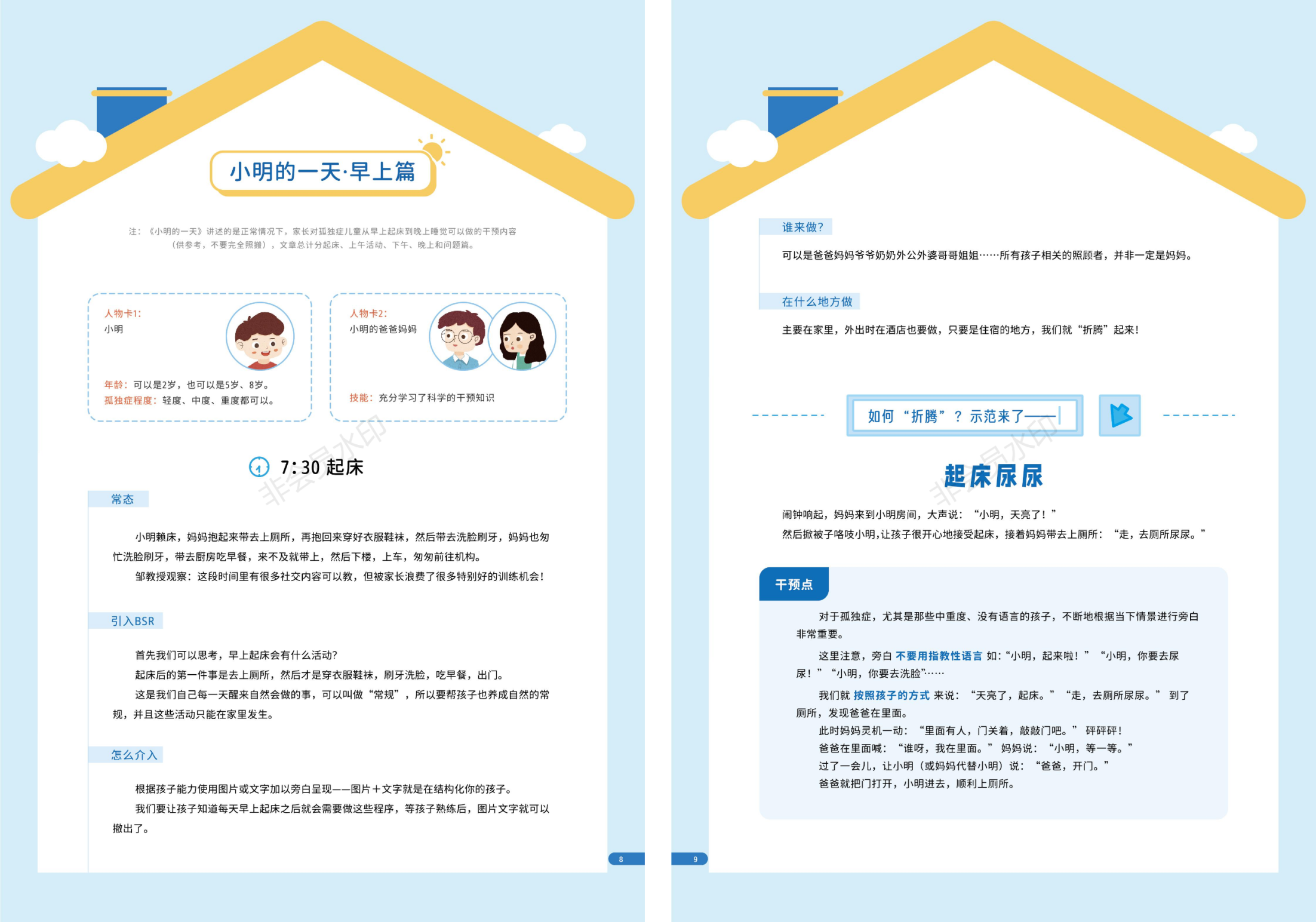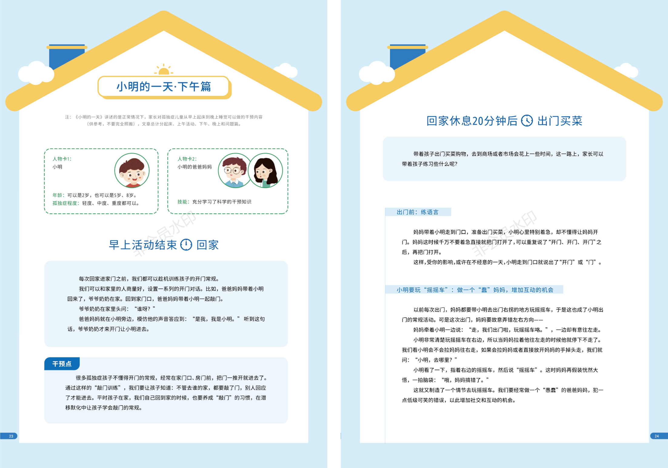 但也有不少家长反应,听了很多理论知识,但却经常不知如何下手,这本居家干预手册则是中山三院儿童行为发育中心邹小兵教授以小明的一天为例子,告诉家长,家庭干预也可以这样做~