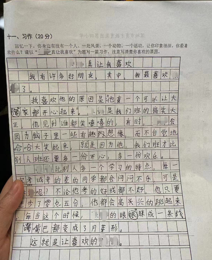那是一次语文考试,习作要求是:请以“ 真让我喜欢”为题,写一篇习作。