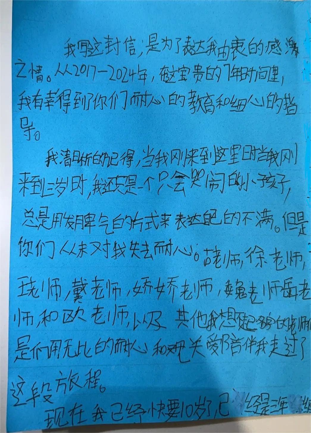 这个1岁多就被邹小兵教授诊断为自闭症的男孩,刚结束了在大米和小米7年的干预,他亲笔写下感谢信,与这段成长历程挥手作别。