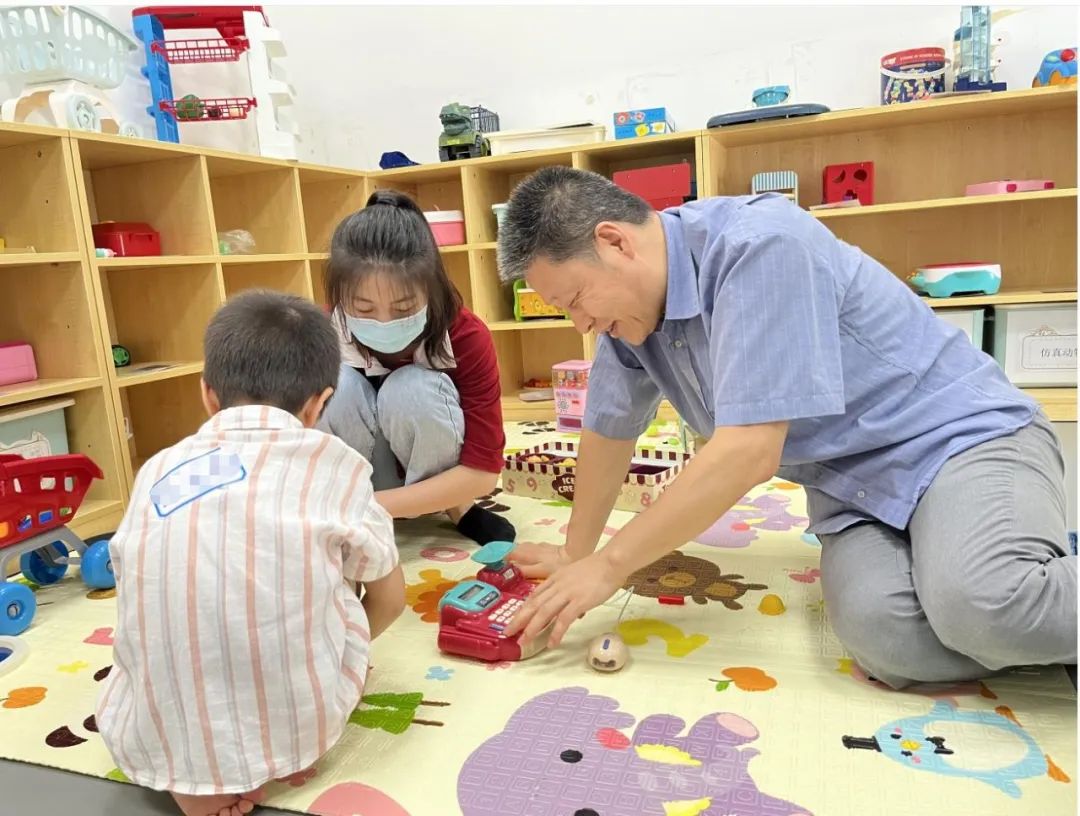 督导钟娟平喊着锐锐的名字,迎上去。似曾相识、布满玩具的舒适空间,追着和自己躲猫猫玩耍的姐姐,3岁4个月的锐锐兴奋得跑着到处撒欢,玩得不亦乐乎。