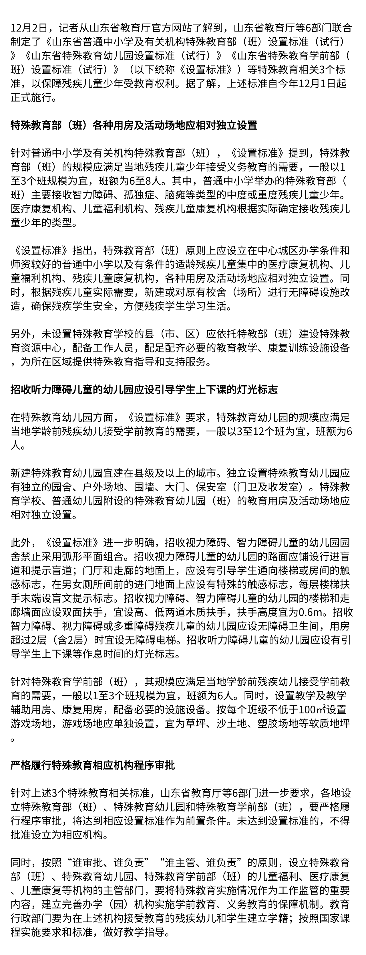 山东制定特殊教育3个标准,保障自闭症等残疾儿童少年受教育权利