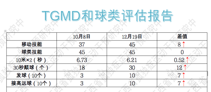 得益于项目的开展,多名孤独症儿童通过体育游戏、篮球、羽毛球、体育舞蹈等项目干预,得到了明显改善。被诊断为孤独谱系障碍的朱朱(化名)参与了为期12周的羽毛球运动干预,干预方案包括前期热身、中期羽毛球技能与相关指令干预,以及后期放松维持三个部分,经过前、后期测试结果对比显示,朱朱的移动技能和球类项目技能均有提高,其中,协调能力、跑步能力和跳跃能力进步最为明显,颠球、发球和接高远球均能保证数量。9岁的周周(化名)经过一年多的康复训练,通过“手脚密码”、“兔兔大迁徙”、“盖房子”、“动作大考验”、“密码连接”等游戏进行注意力训练、抑制控制、工作记忆等多方位锻炼,各项指标均有明显提升,持续注意力增加,自我刺激行为次数减少,完成任务时间减少,并能够思考并转换游戏规则,坚持完成目标任务。此外,项目在2021年还增设了针对孤独症儿童家长的干预课程,通过舞蹈运动,干预相关的抑郁情绪和焦虑情绪,缓解家长的心理压力。