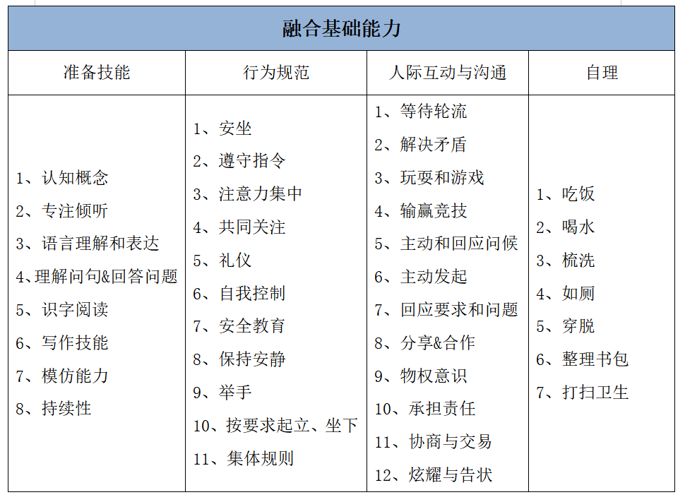 在他看来,谱系孩子进入小学,至少需要具备以下: