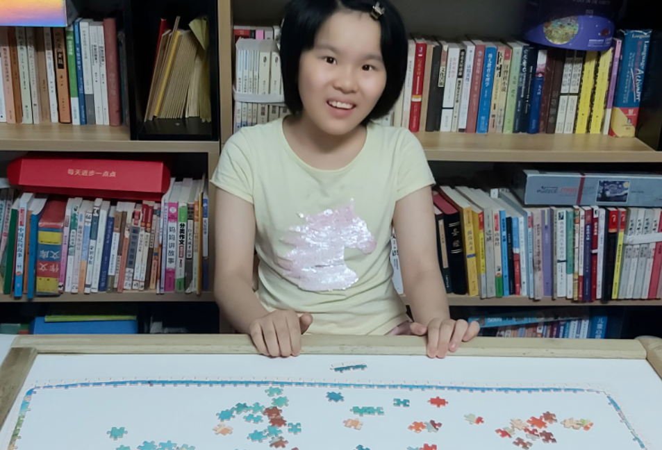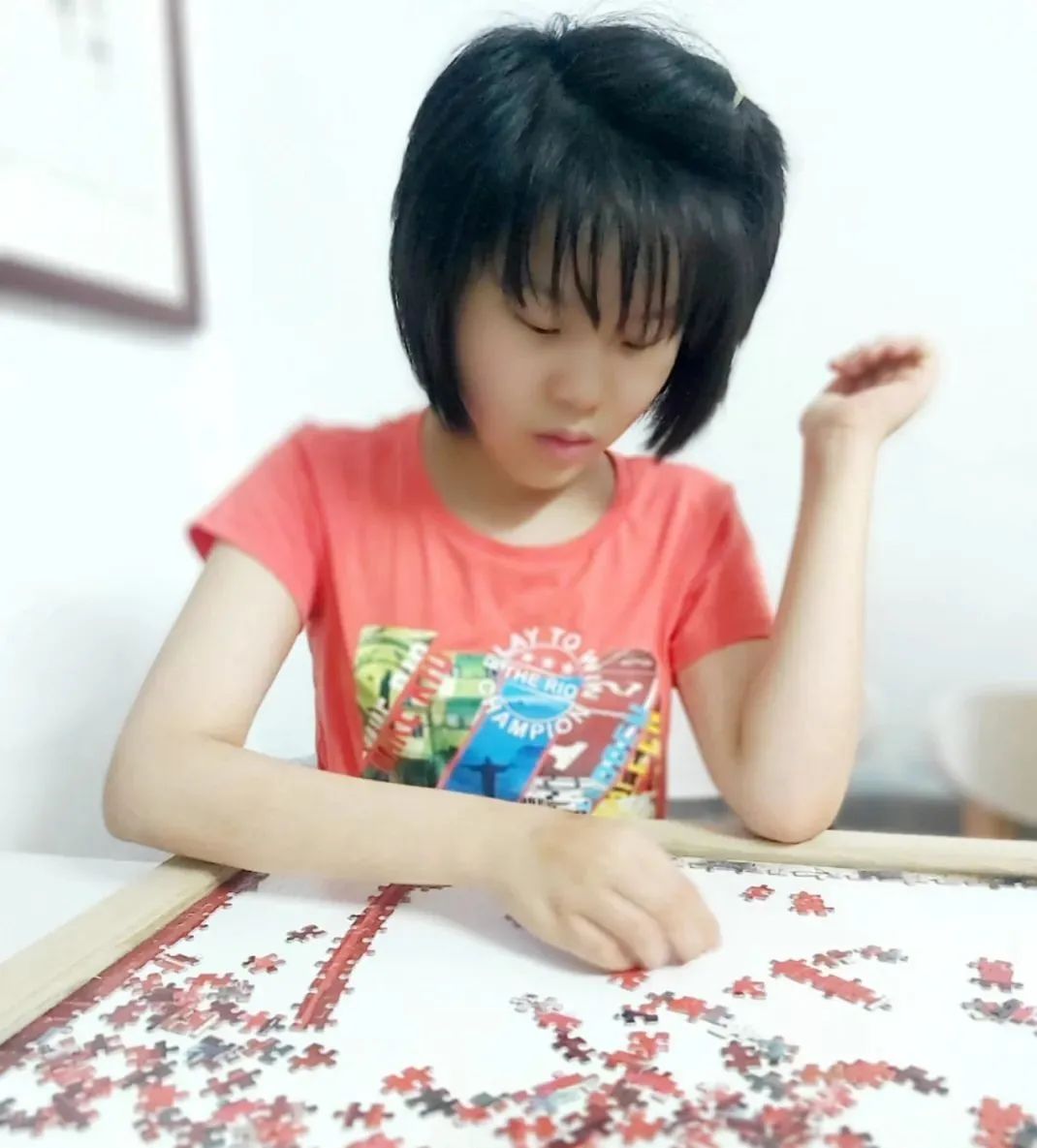 学习方面,她可以读写小学六年级的部分课文还能理解大意,能在我的辅助下写写小日记记录生活片段。还能不看图纸独立完成2000以内的成人拼图,并通过这个特长挣到了钱。(自闭症女儿智商只有36,妈妈这样教,11岁就开始挣钱啦!)