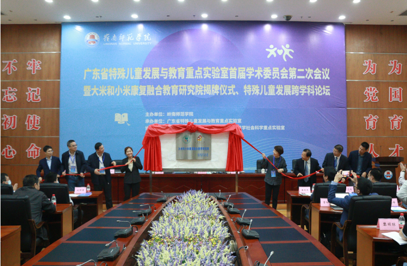 11月21日,广东省特殊儿童发展与教育重点实验室首届学术委员会第二次会议在岭南师范学院国际会议厅召开。由深圳市复米健康科技有限公司(以下简称“大米和小米”)与广东省特教重点实验室合作共建的“大米和小米康复融合教育研究院”在会上揭牌成立。这是广东省首个以“融合教育”为研究重点的研究院,也是全国第一个与企业合作共建的融合教育研究院。