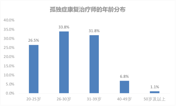 报告显示,在参与问卷调研的1326名孤独症康复治疗师中,年龄在30岁以下的占比达60.3%,而31-39岁、40-49岁、50岁以上分别占比31.8%、6.8%、1.1%。大米和小米首席品牌官潘采夫表示,孤独症康复治疗师属于朝阳职业,越来越多的青年选择加入这个领域。