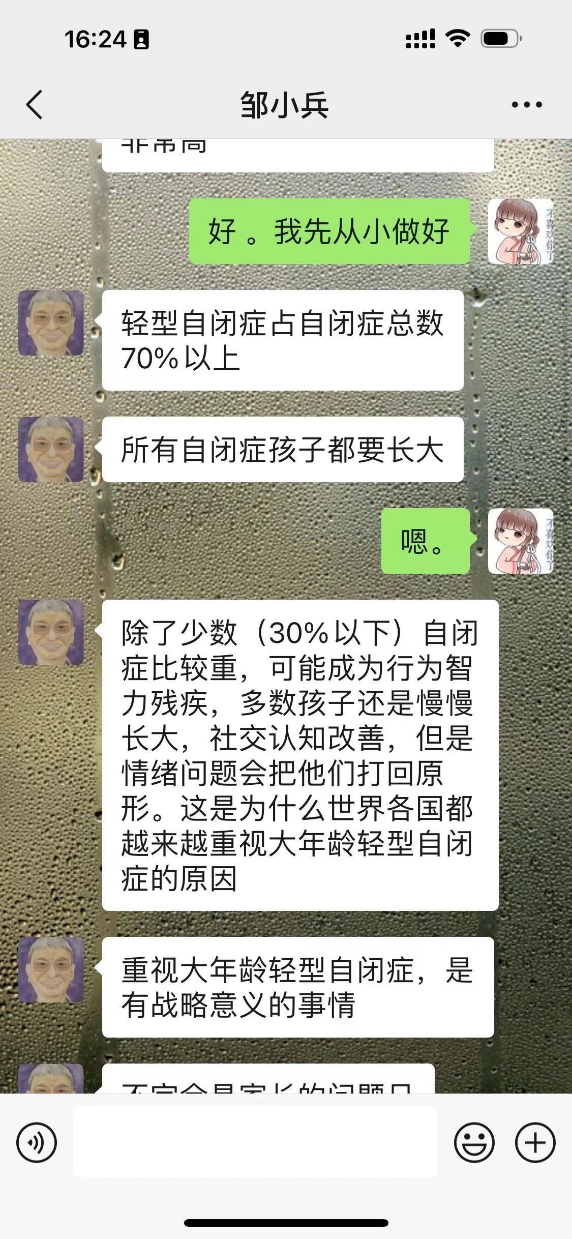 当邹小兵教授知道他一直看着成长的自闭症孩子娘闰已入职大米和小米,成为一名实习康复师之后,欣慰地说:“接下来,你们的使命就是接纳更多的轻度成年自闭症孩子进入公司工作,在很多国家,让他们成功就业,这是一个战略性工作。”