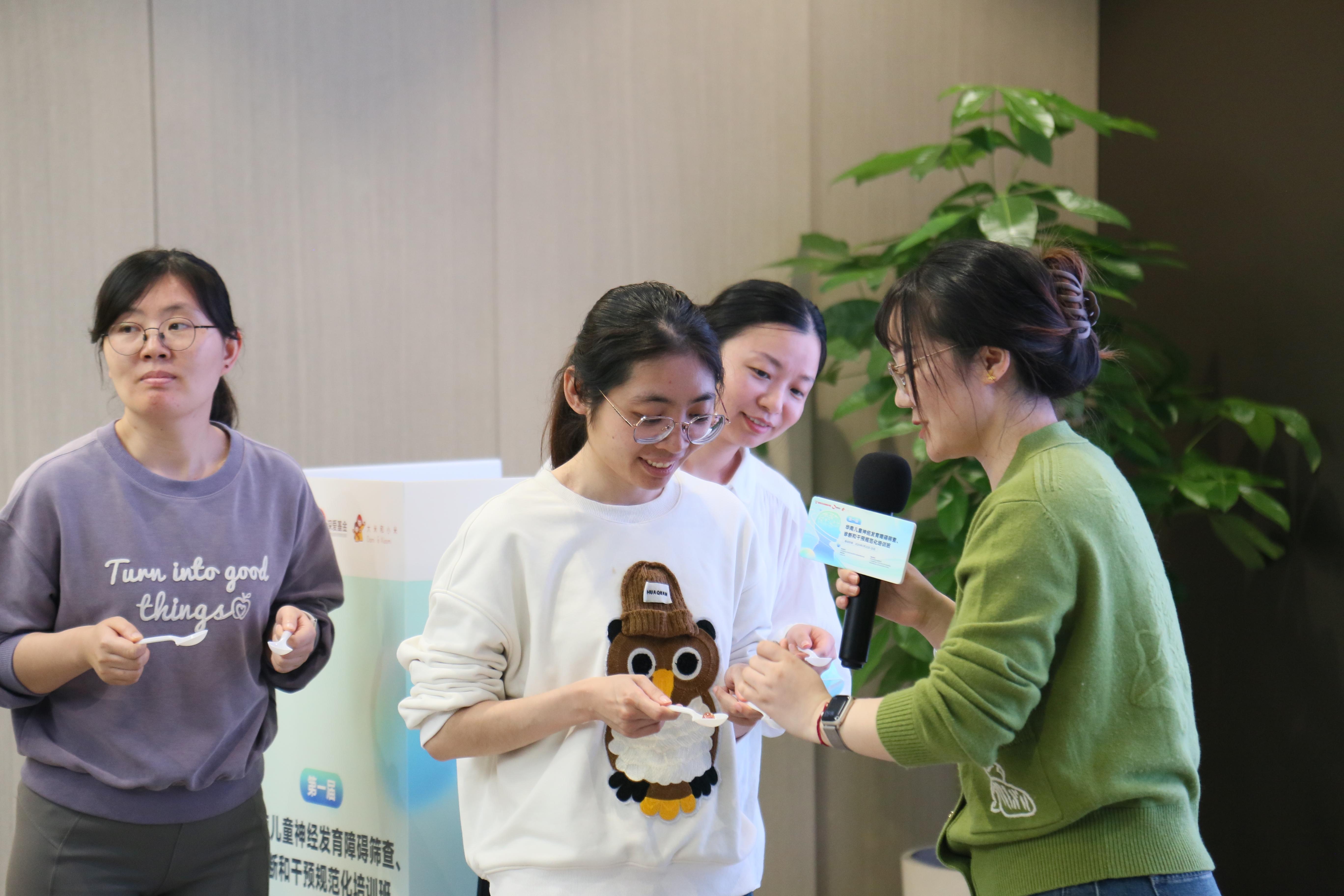第二天的培训主题以孤独症为主。大米和小米研发总顾问、中山三院儿童发育行为中心主任医师邹小兵教授带来《自闭症个体化干预》,大米和小米儿童青少年发展行为研究院院长曾松添博士带来《如何创造自然情景干预机会提升孤独症康复效果》,深圳市儿童医院儿童保健与心理健康中心治疗师团队彭彦桐、于湉、孙倩、李娜娜带来《应用行为分析干预》《高功能ASD儿童社交技能训练》,现场不仅有理论学习,还通过游戏互动,让学员体验了专业的干预方法。
