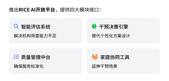 RICE AI融合“基座大模型 + 专业知识 + 康复大数据”的系统,像一把钥匙,试图打开特需儿童康复行业的资源困局,不仅提升效率,还打破了地域、成本、专业门槛的限制,提高优质康复资源的可及性。