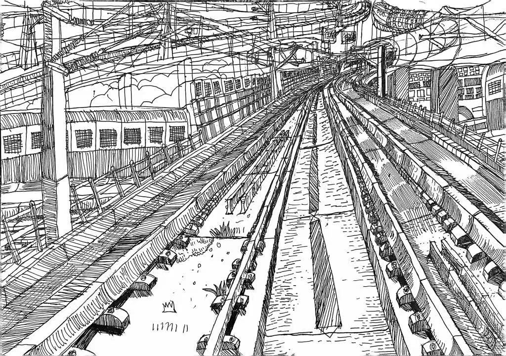 曹璟桓(11岁)作品《线条织就的铁路迷宫》