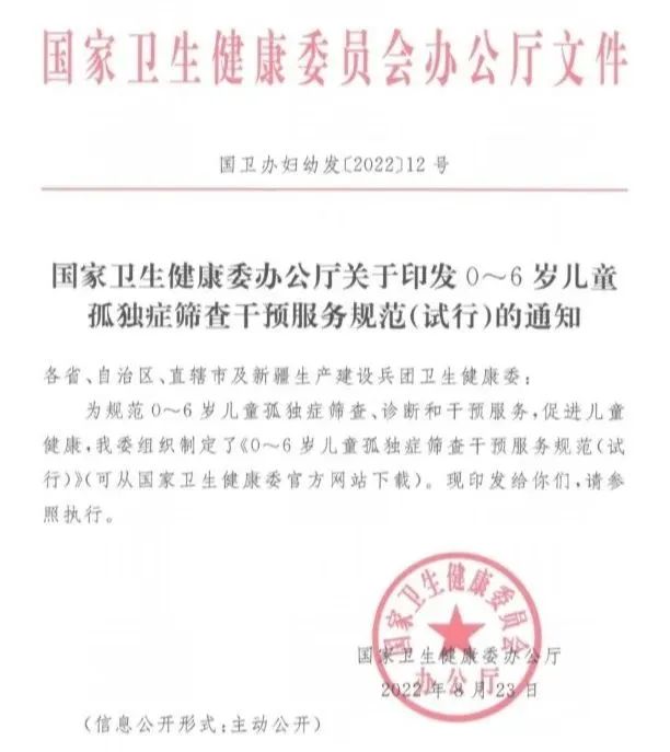 0~6岁儿童孤独症筛查干预服务规范(试行)