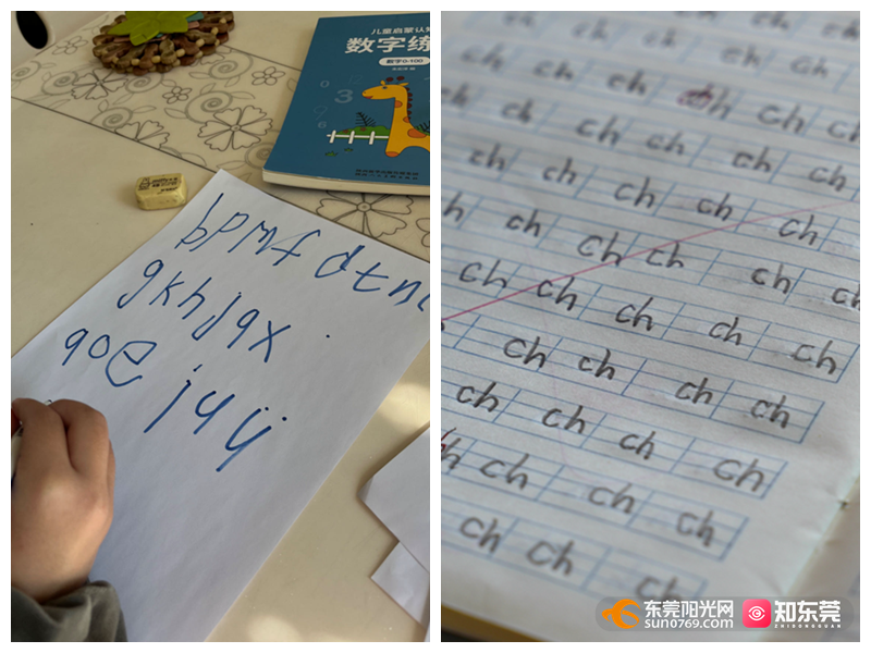 ▲宸宸写的拼音:2022年12月对比2024年1月 ,“小蝌蚪”字体进化成“印刷体”。