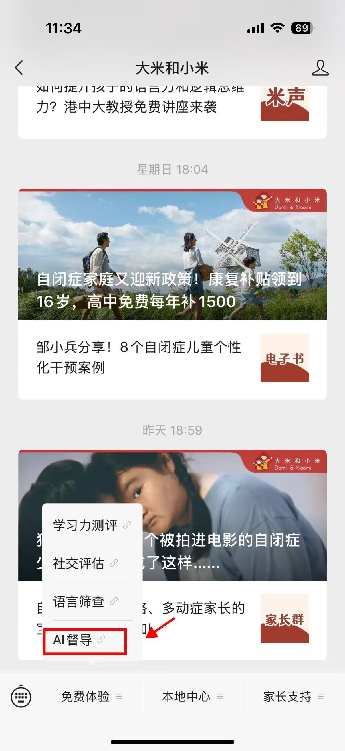 如果你是一名自闭症孩子家长,当你打开大米和小米AI督导,你可以在家拥有一名超过10年经验的督导,帮助你在家给孩子干预。